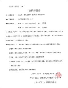 私どもで施工いただけるなら、次回の塗装まで何があっても、あなたのお家を守ることをお約束します。