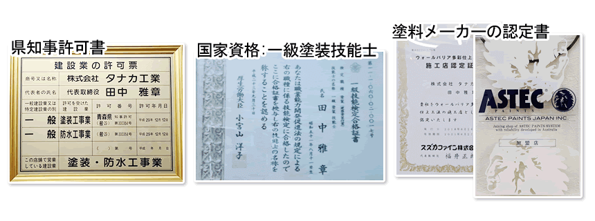 私どもは、国や青森県からの許可書や資格を持つ塗装業者として、あなたの大切な家をしっかりと塗装することをお約束します。