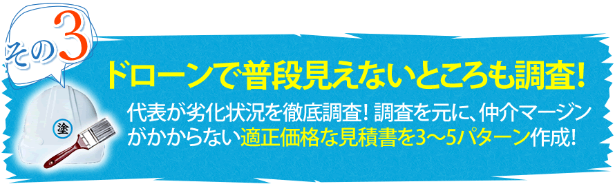 このような徹底調査を元に、しっかり下地補修をして塗装をするから、他社が同じ塗料で塗ったときよりも長持ちします。