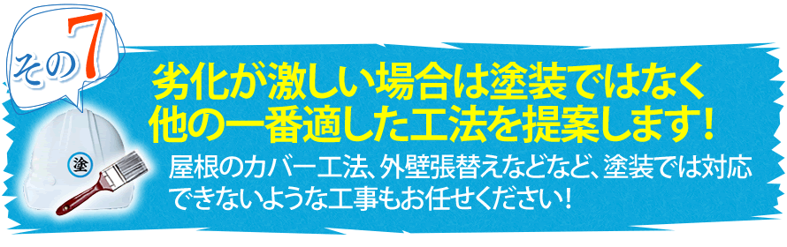 私どもは、塗装で対応できるものには塗装で、塗装では対応できない場合は地元のプロの大工さんと協力してカバー工法などで対応いたします。