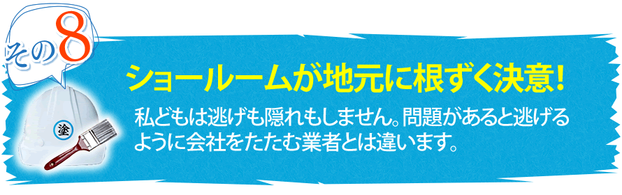 塗装店の中には、事務所をマンションやアパートの一部屋にし、適当な塗装をして数年後に会社を倒産させ保証から逃れようとする会社もあります。